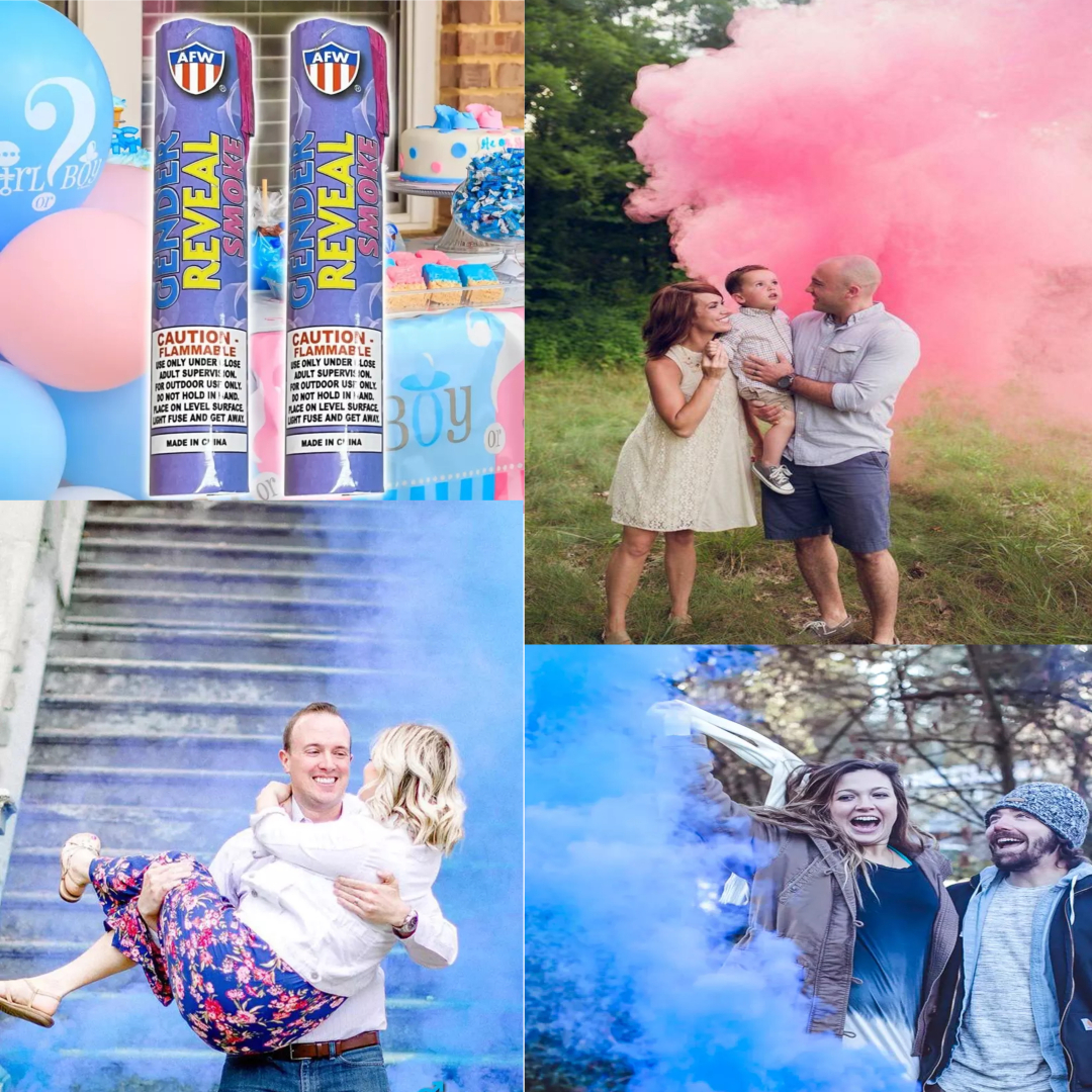 - 2 Gender Reveal Smoke Stick (Marked with code so you don't know color inside)Smoke Sticks In Action (click to see pic) - Add Extras for $5 each with this package ONLY ($10 value)