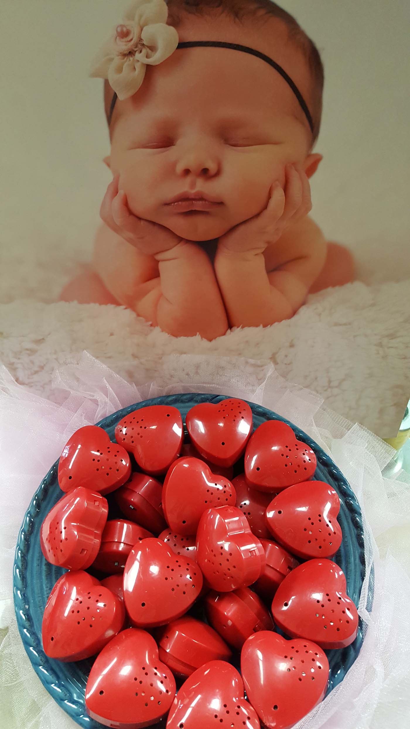 - Sound Of Baby's Heartbeat Recorded On Our Heartbeat Heart (click to see pic) Shaped Recorder. -- (One Included Heart Per Pregnacy - Additional visits don't include additional hearts)